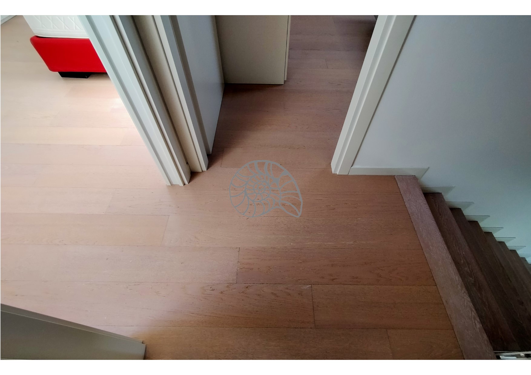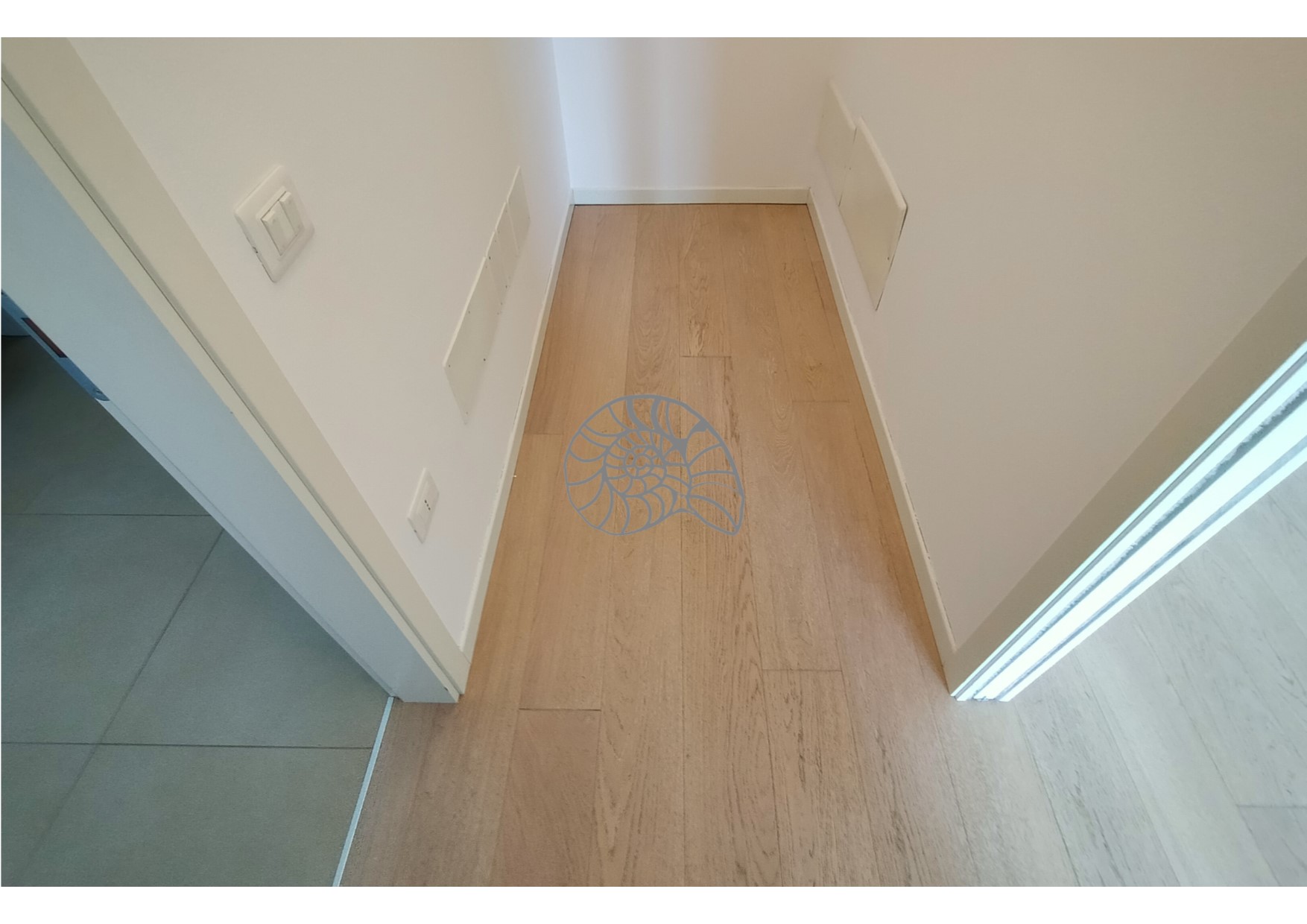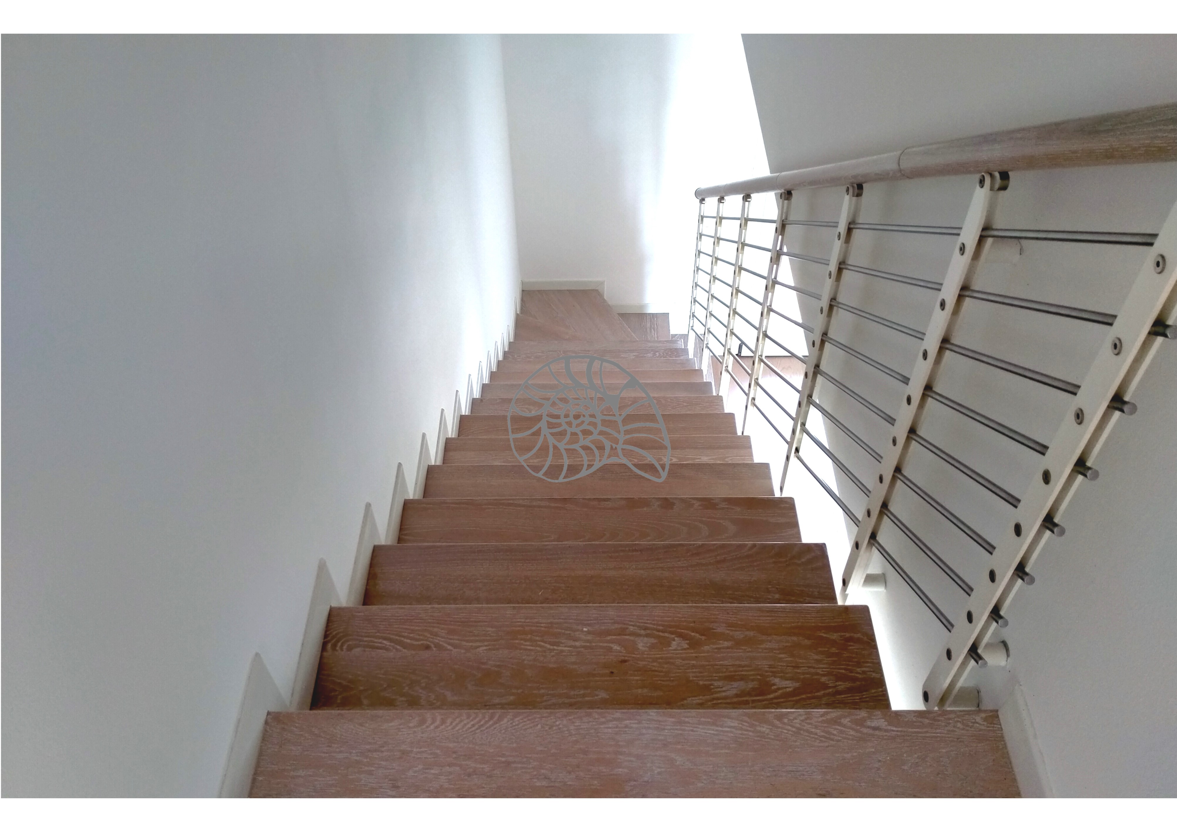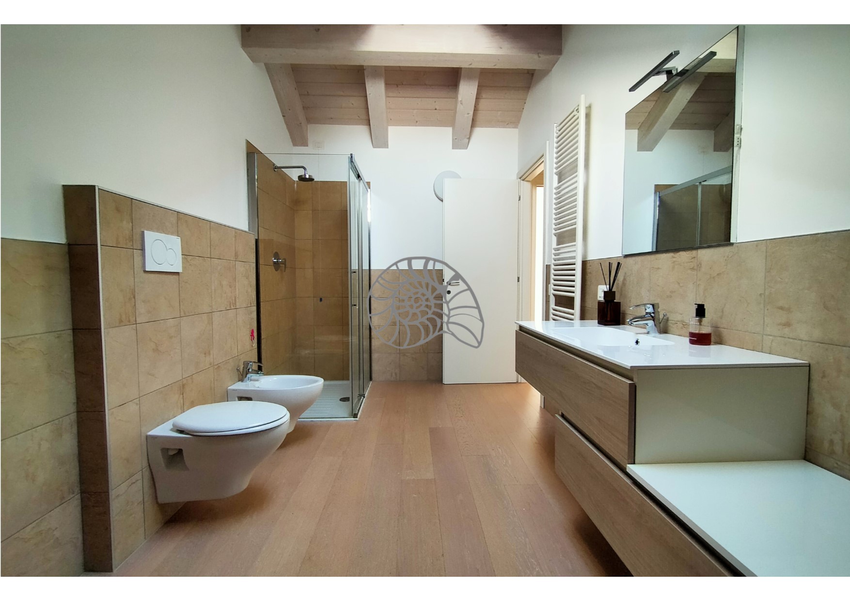 L'appartamento è dotato di riscaldamento a pavimento autonomo a gas con l'integrazione dell'impianto solare termico, impianto d'aria climatizzata con funzione di pompa di calore, serramenti esterni in legno laccato bianco con vetrocamera e scuri laccati, zanzariere, velux motorizzati, porte interne laccate bianche, portoncino d'ingresso blindato, pavimento in legno di Rovere sbiancato in tutta la superficie, sanitari sospesi, videocitofono, luci di emergenza .