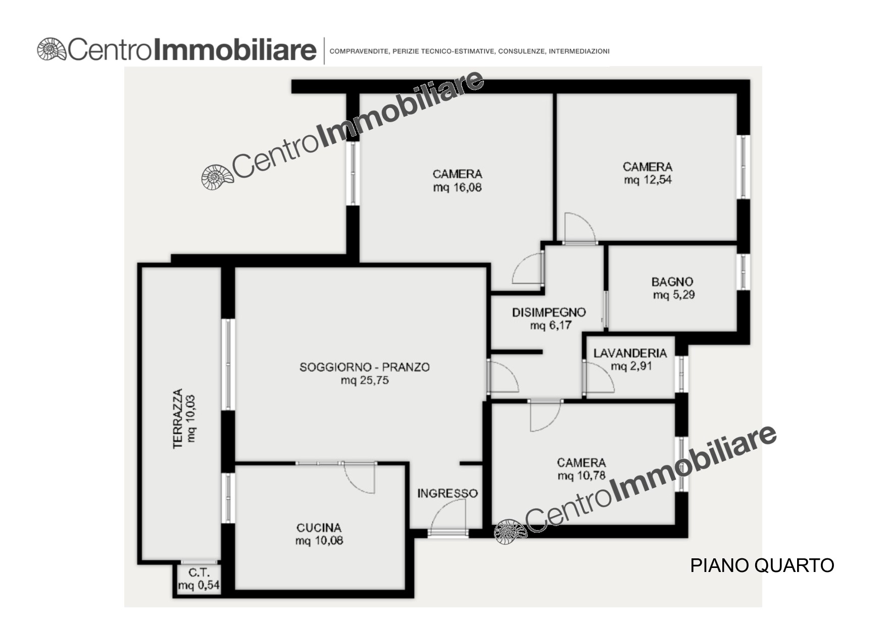 Ingresso, soggiorno-pranzo, cucina abitabile, disimpegno, camera matrimoniale, camera doppia, camera singola, bagno e lavanderia predisposta per secondo servizio.